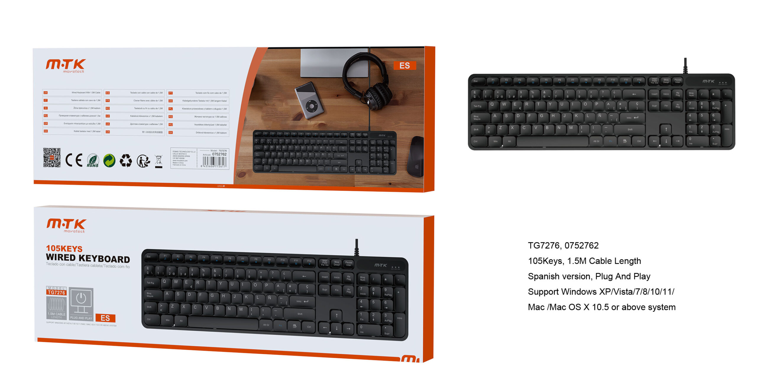 TG7276 NE Luxury Teclado Espanol 105 Keys, Cable 1.5M, Negro