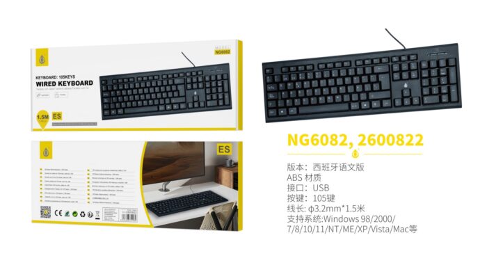 • NG6082 NE Teclado con cable Espanol, 105Key, Cable 1.5m,Negro