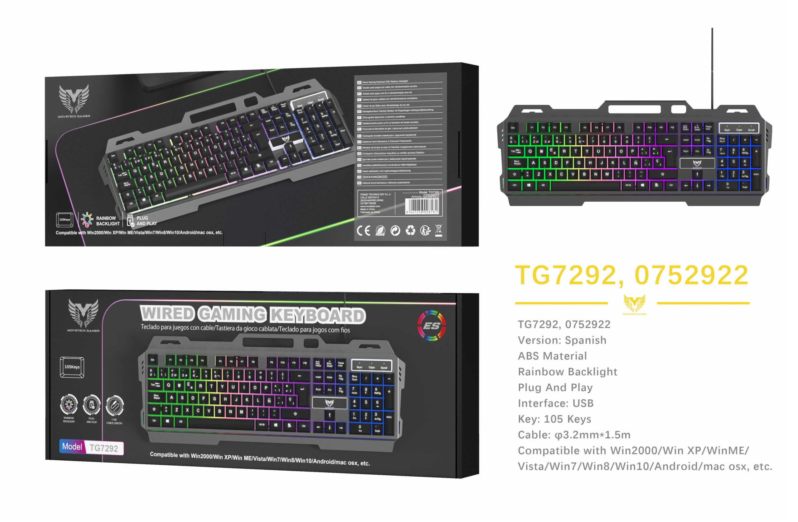 TG7292 NE Teclado Gaming Espanol 105 Keys, Con Luz ambiente, Cable USB 1.5M, Negro