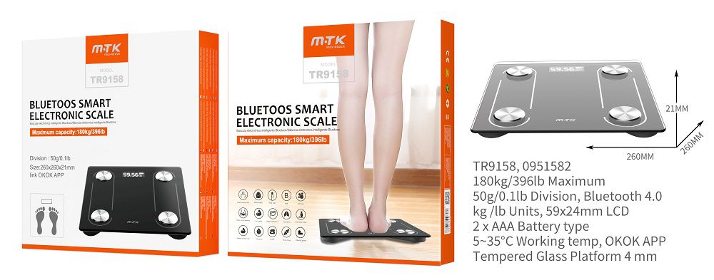 TR9158 NE Bascula de Grasa Corporal con Bluetooth,