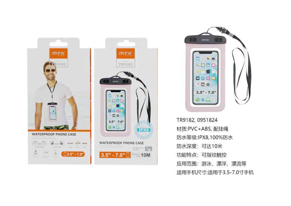 TR9182 RS Funda impermeable con correa, Tactil para Movil 3.5-7 Pulgada, IPX8 Profundidad 10M Max, Rosa Claro