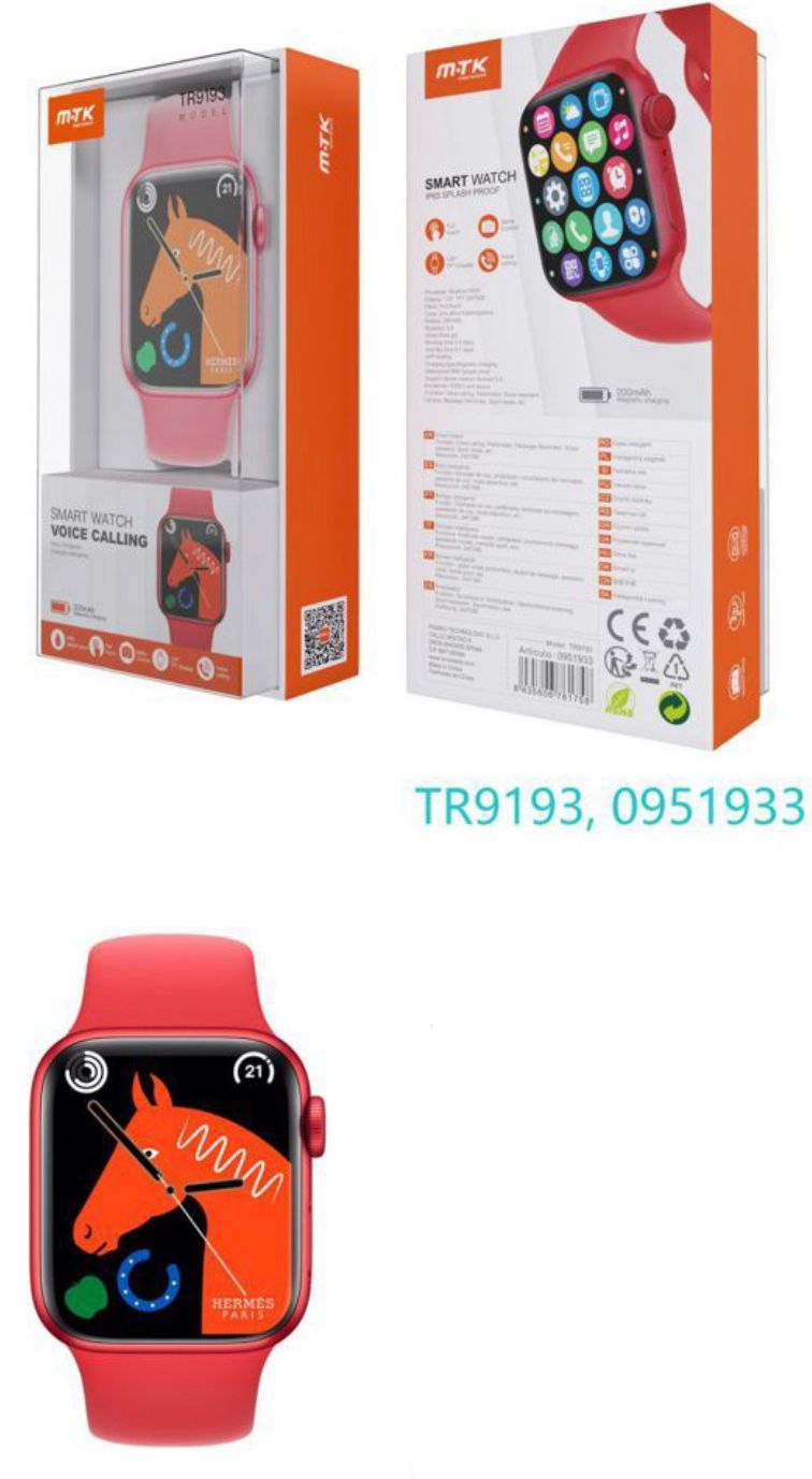 TR9193 RJ Reloj Inteligente con bluetooth 5.0, Pantalla tactil de 1.81 pulgadas, Soporta llemadas, Asistente de Voz,Impermeable IP65, Bateria 200mAh, Soporta Andriod y IOS, Rojo
