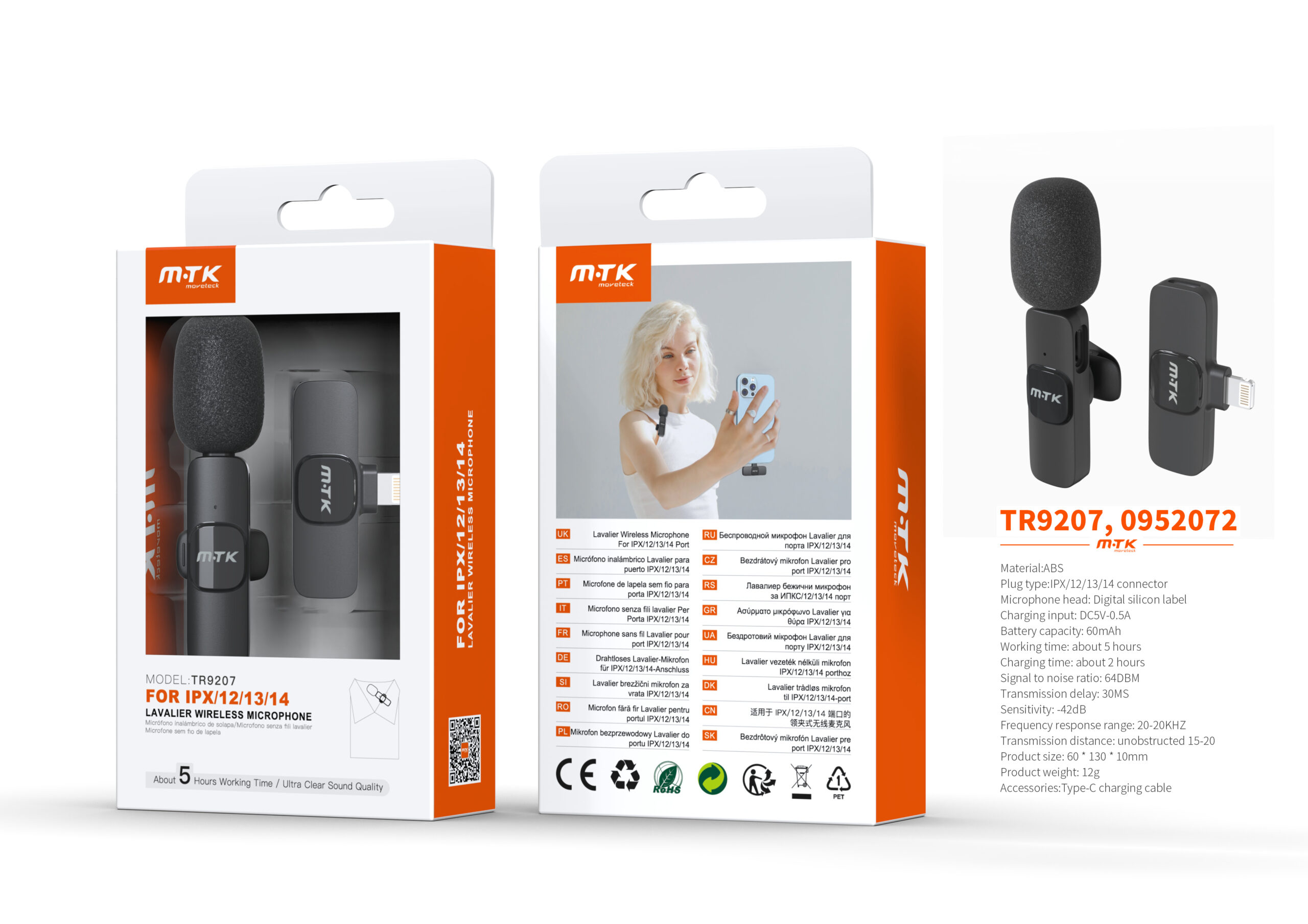 TR9207 NE Mini Microfono Lightning con Clip, Bateria 60 mAh, Negro