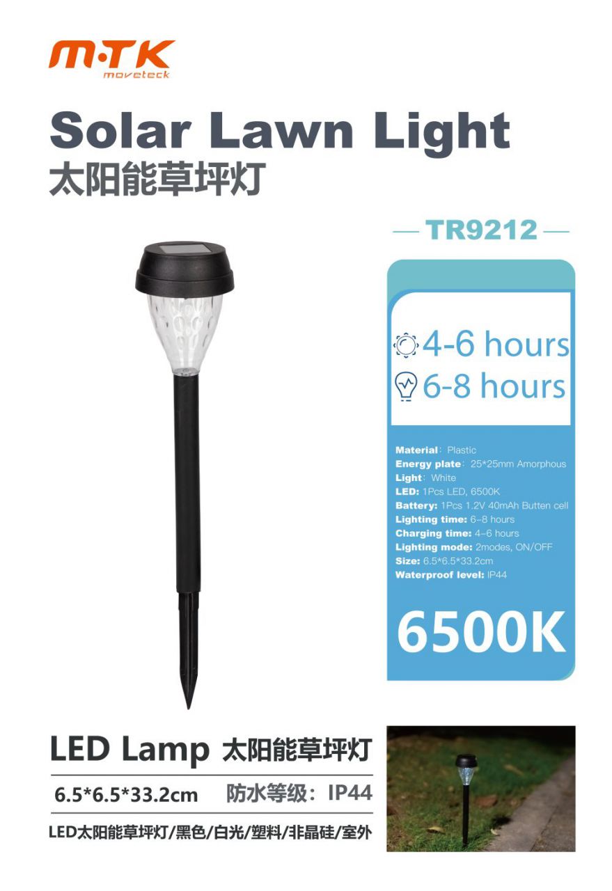 TR9212 lampara Solar 6.5*6.5*33.2cm