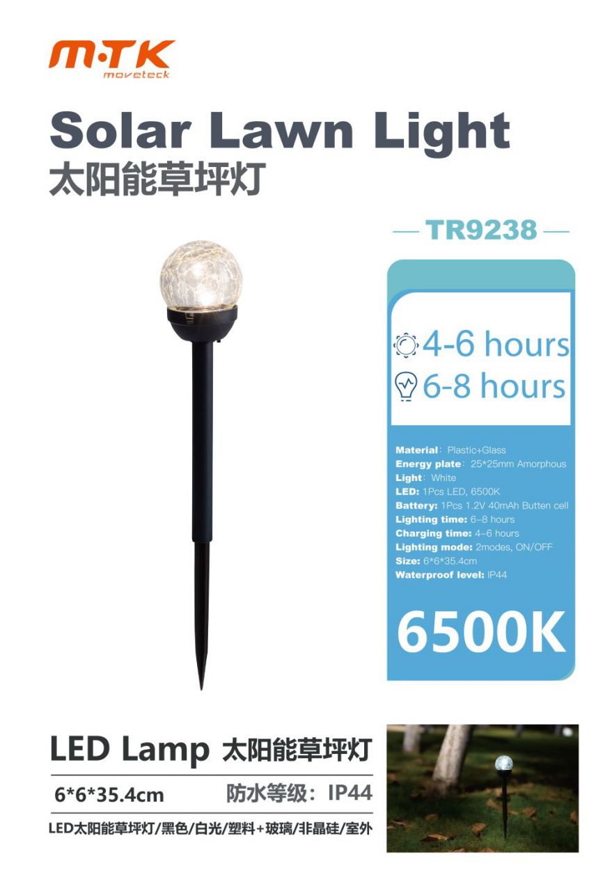 • TR9234 lampara Solar 6.2*6.2*43.5cm