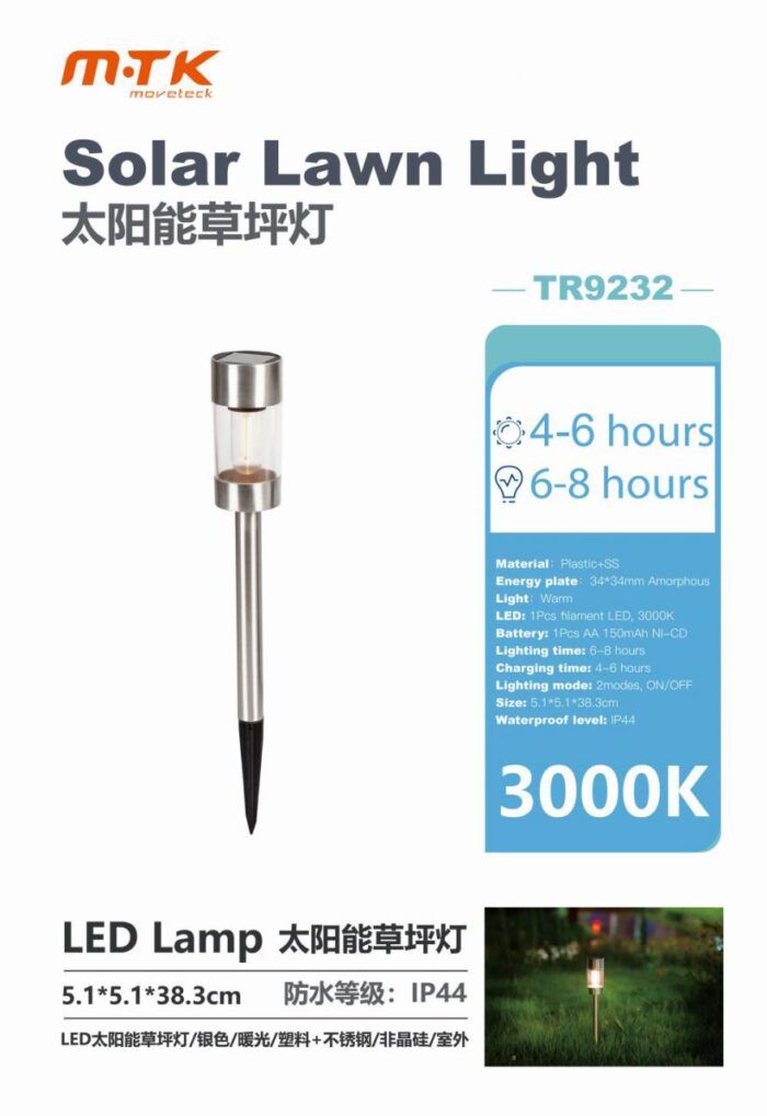 • TR9236 lampara Solar 6.2*6.2*43.5cm