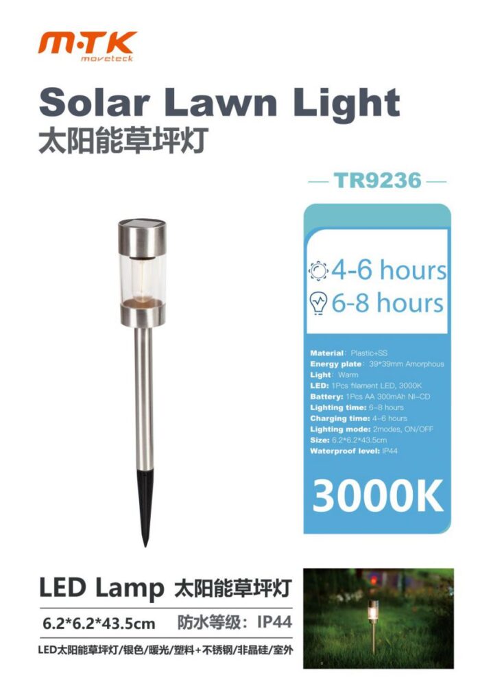 • TR9236 lampara Solar 6.2*6.2*43.5cm