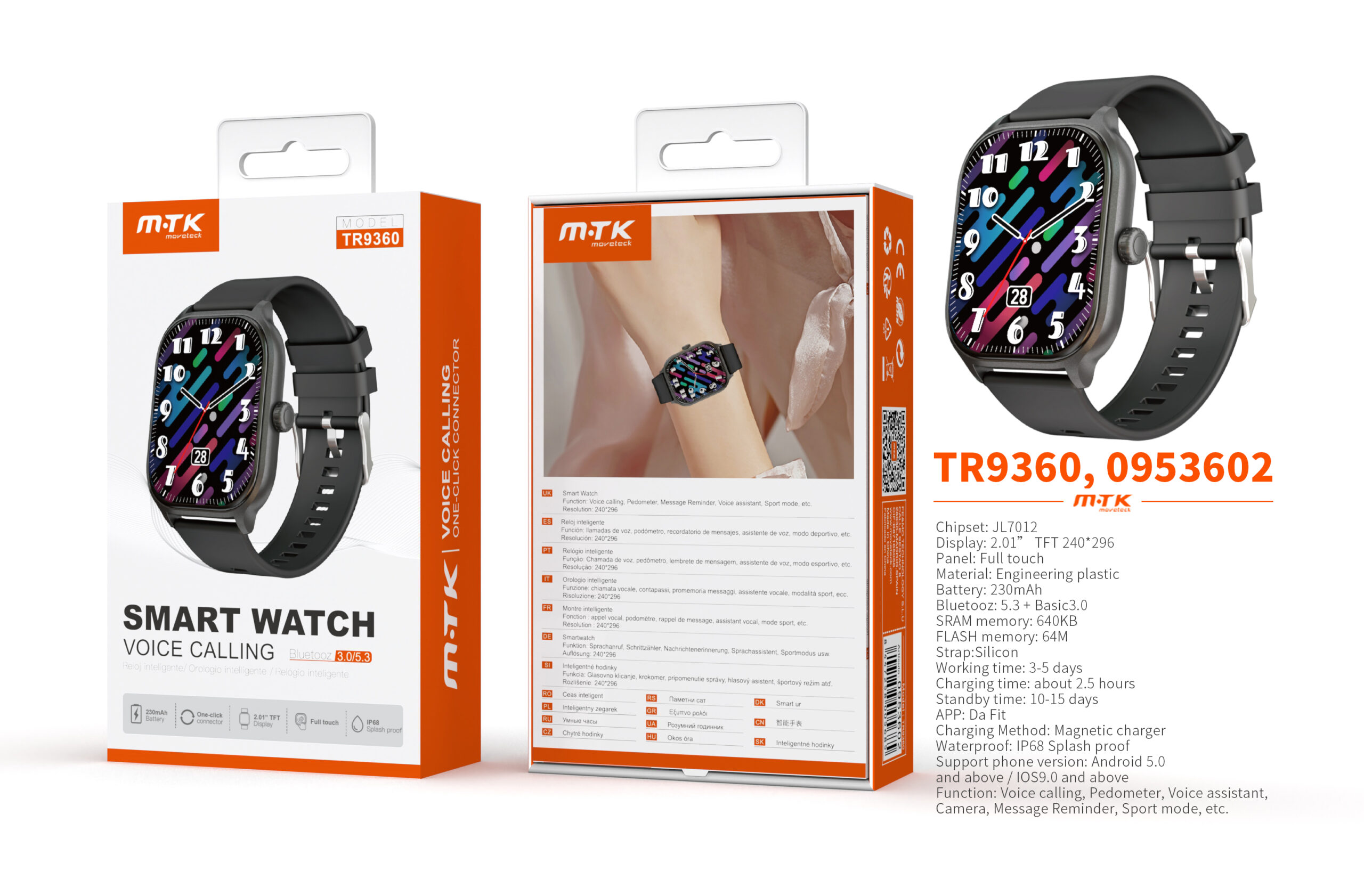 TR9360 NE Reloj Inteligente con bluetooth 5.3, Pantalla Full tactil de 2.01 pulgadas, Soporta llemadas/Asistente de Voz/IP68, Bateria 230mAh, Negro