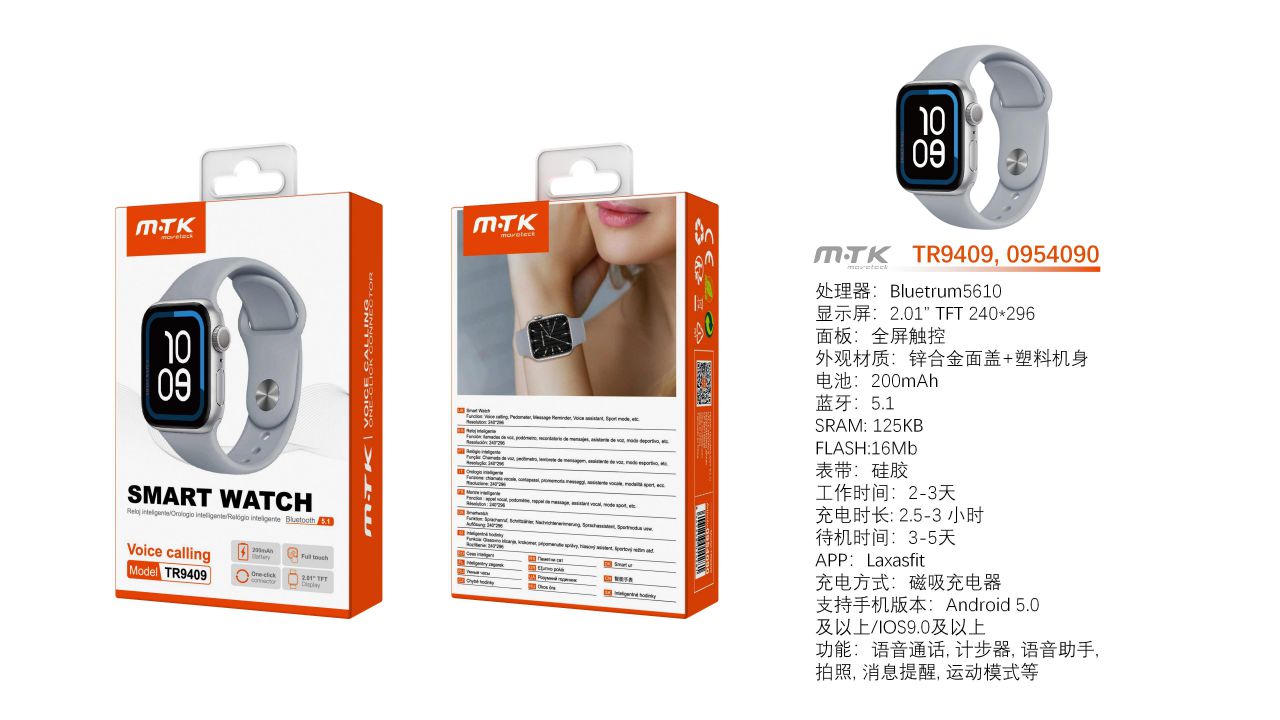 TR9409 GR Reloj Inteligente con bluetooth 5.1, Pantalla tactil de 2.01 pulgadas, Soporta llemadas/Asistente de Voz/ Bateria 200mAh, Soporta Andriod y IOS, Gris
