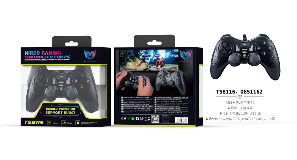 TS8116 NE Mando de control Gaming para PC, Con Doble Vibracion, Cable USB 1.5m, Negro