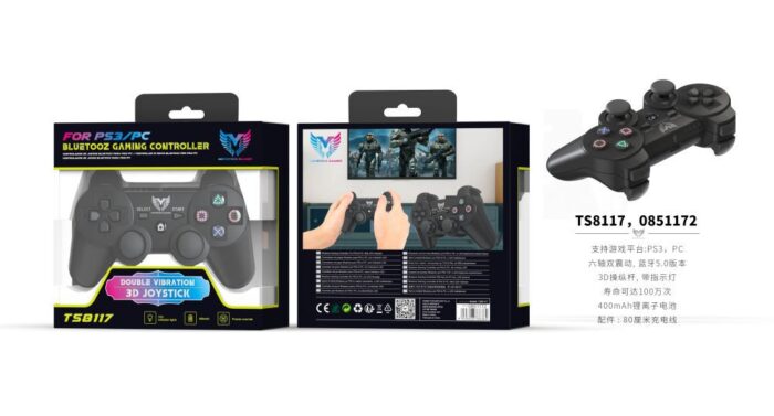 TS8117 NE Mando de control Gaming Con Bluetooth 5.0 para PS3/PC, Con Doble Vibracion, Bateria 400mAh, Negro