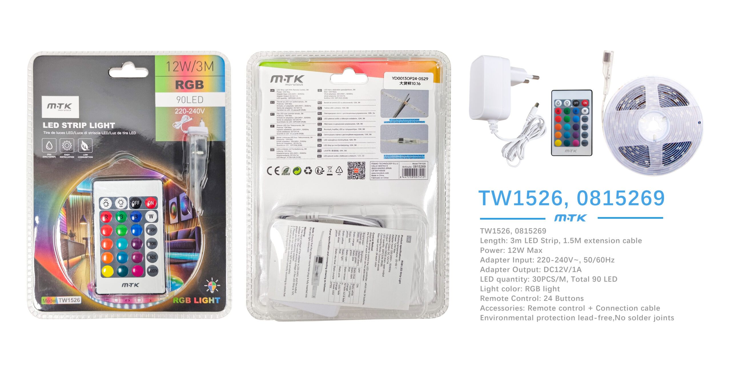 TW1526 Tira de Luces RGB 90LED/5W/3M