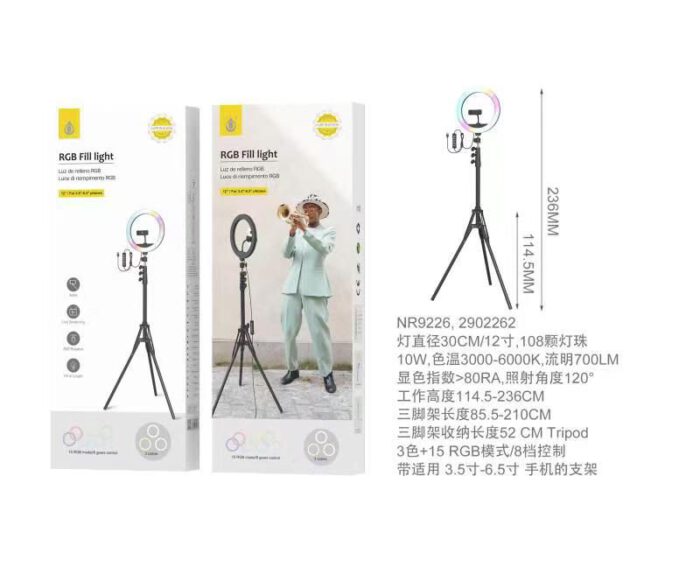 • NR9142 AZ Mini Anillo Luz LED con Clip Universal para Moviles, 3 Niveles de Brillo, Azul