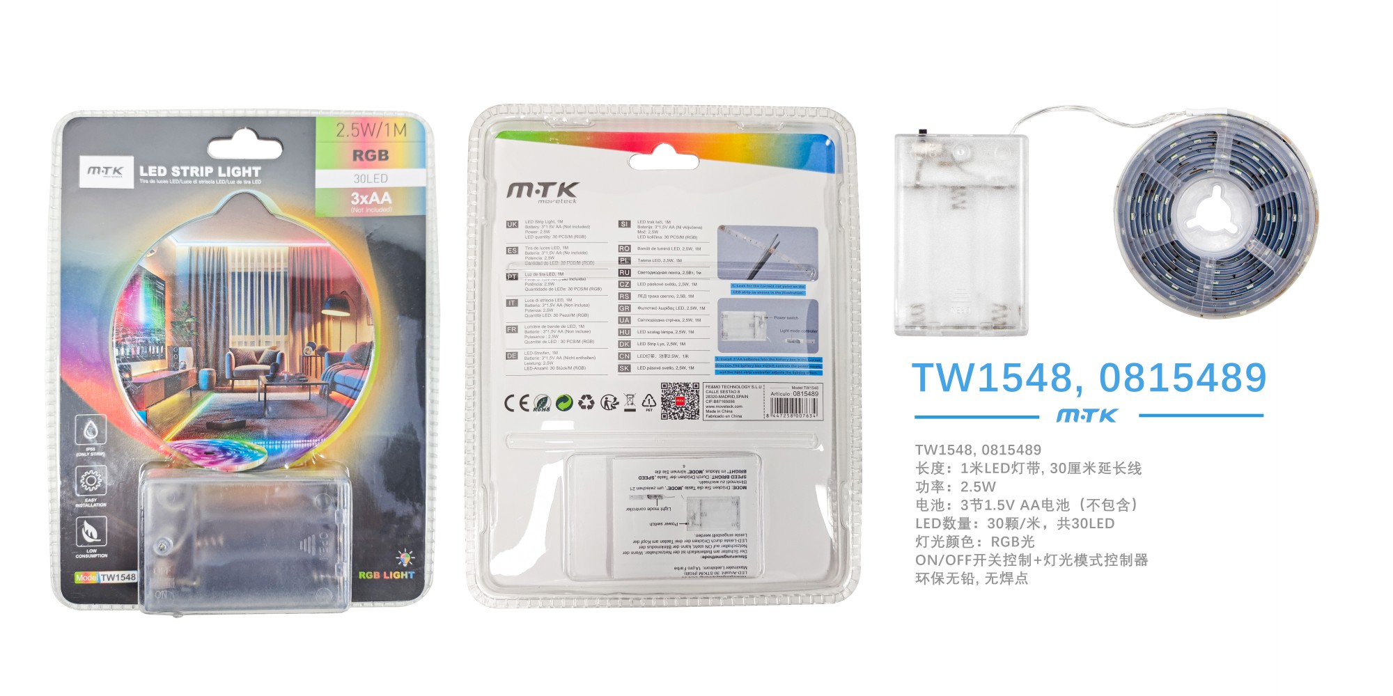 TW1548 Tira de Luces con pilas luz RGB/30LED/2.5W/1M
