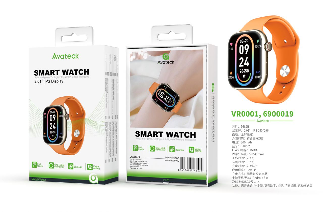 VR0001 NA Reloj Inteligente con BTS 5.2, Pantalla tactil de 2.01 pulgadas, Soporta llemadas/Asistente de Voz, Bateria 200mAh, Naranja