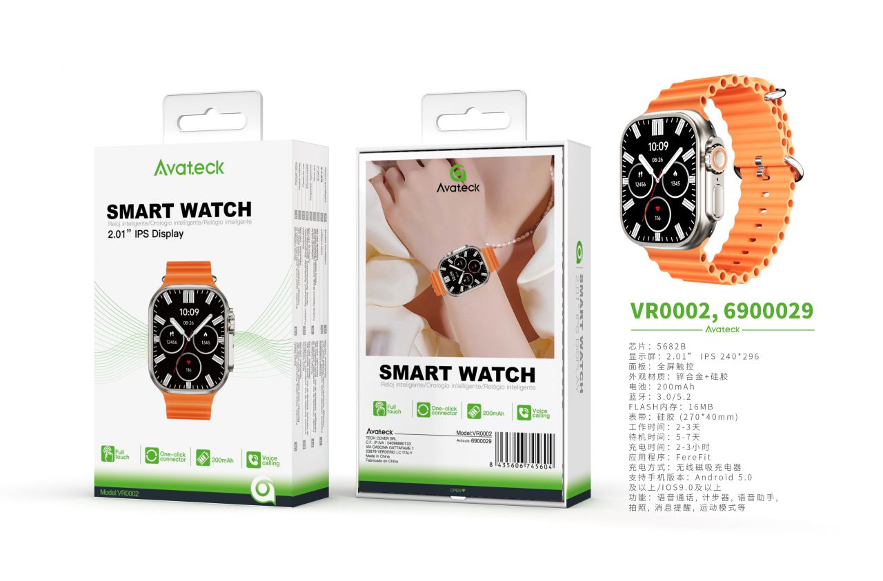 VR0002 NA Reloj Inteligente con BTS 5.2, Pantalla tactil de 2.01 pulgadas, Soporta llemadas/Asistente de Voz,IP65, Bateria 200mAh, Naranja