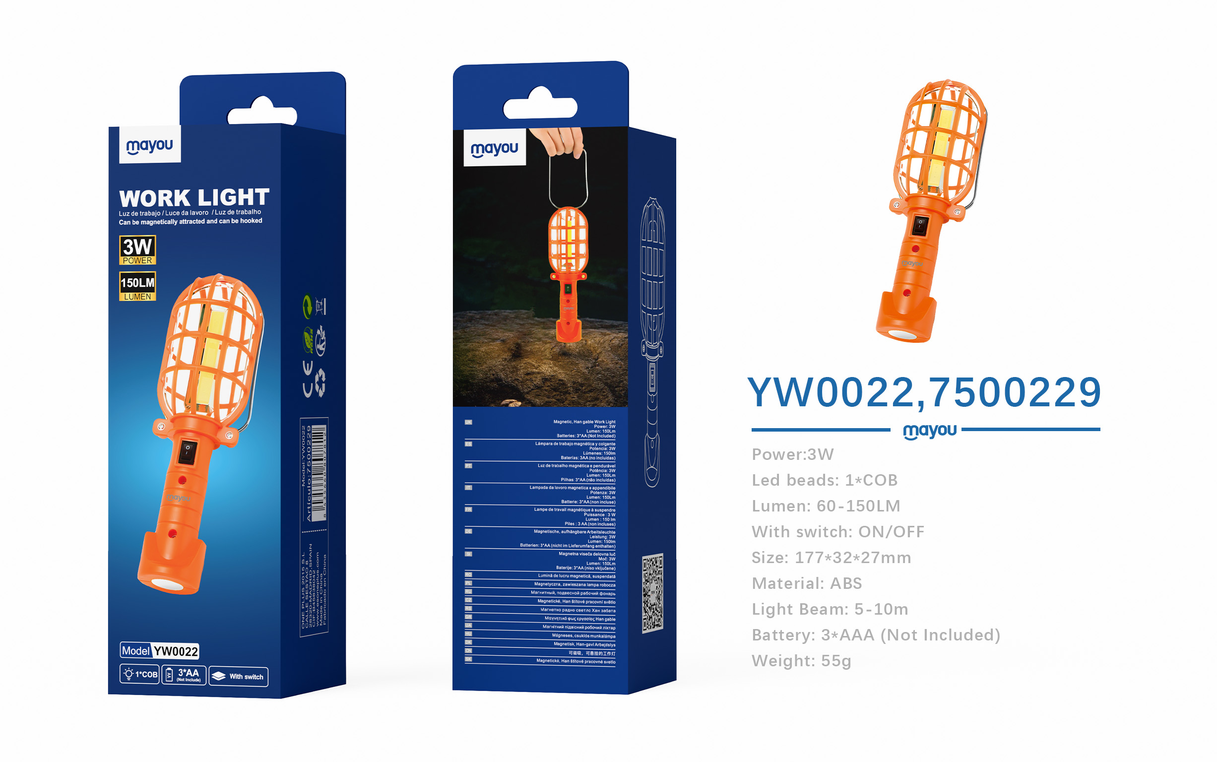 YW0022 NE Linterna de trabajo magnetico con soporte de mano,  Bateria 3*AA/3W/150LM (no incluido),Negro